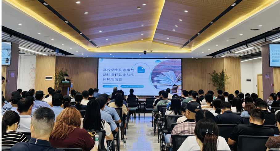 讲座中,任律师系统阐释“过错责任”“公平责任”等法律原则,层层剖析了学校需承担责任的多种情形,以及学生自身过错、第三人致害时的责任划分,为教职工勾勒出清晰的法律责任边界。为使抽象法条具象化,任律师匠心独运地选取了一系列典型校园案例:从实验课烧伤事件中实验室管理责任的认定,到校外实习交通事故中校企职责的划分;从心理疏导工作的法律必要性,到应急救助“黄金处置期”的关键性……每个案例都如同一面镜子,照见校园安全管理中容易被忽视的细节。最后,任律师引导学校教职工要转变观念,从侧重于“事后处置”向强化“事前预防”积极迈进。课程强调,必须紧紧把握事前预防和事后处置的每一个“黄金期”,迅速响应,规范流程,以防止事态扩大与矛盾激化。